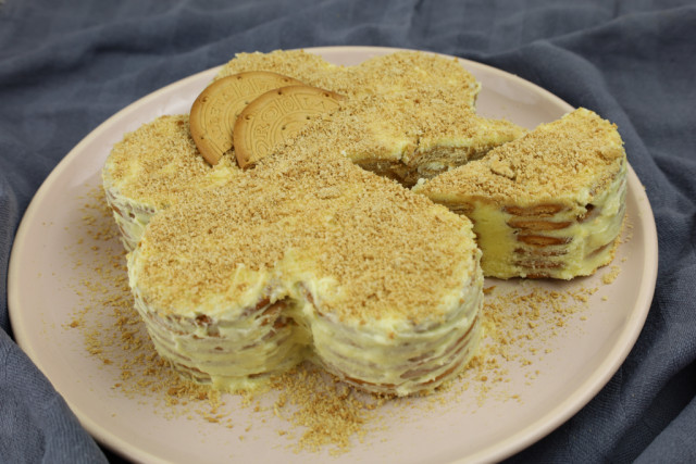 Un dessert facile et sans cuisson, composé de biscuits secs et de crème au beurre.