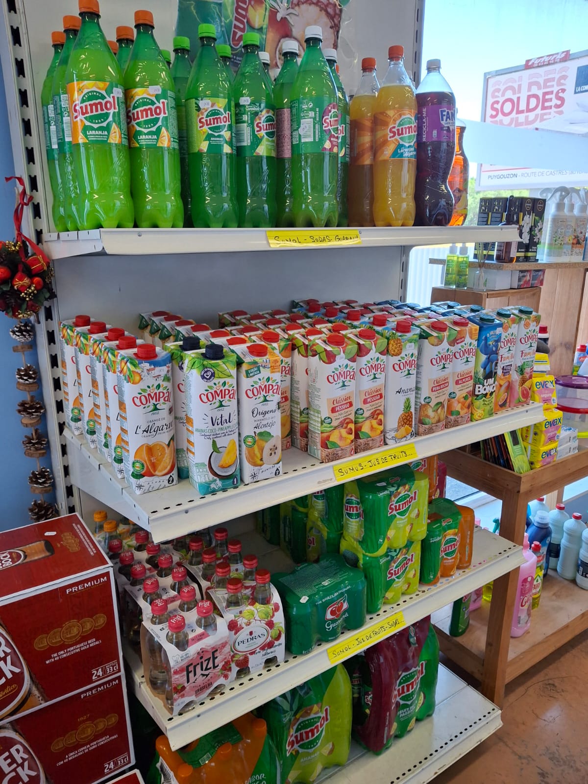 Boissons sans alcool, eaux minérales, eaux gazeuses, jus de fruits Compal (ananas, maracuja, pêche, poire….)